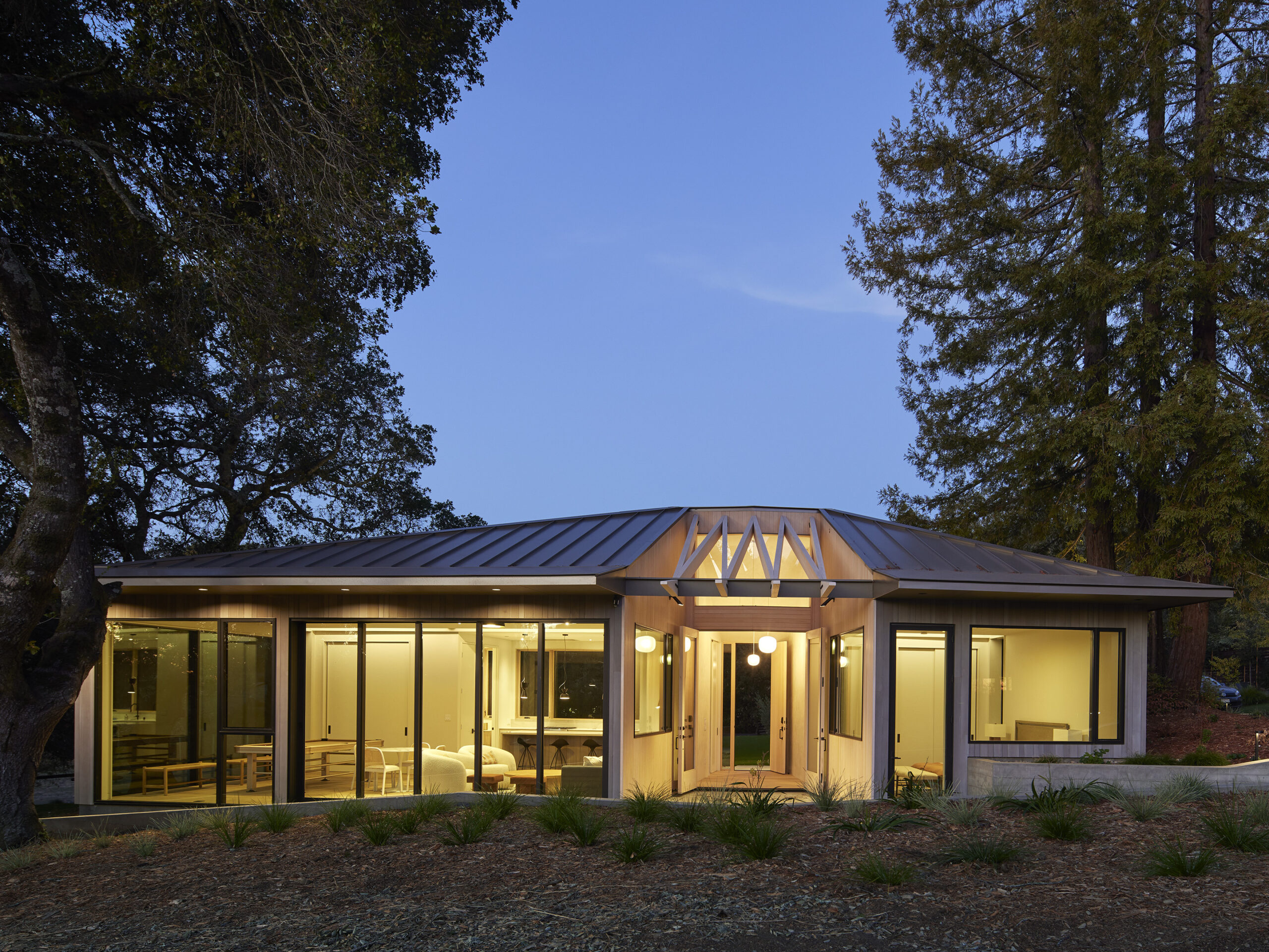 Our exterior lighting designs prioritize balanced relationships among architecture, landscape, and the surrounding ecology. We take a painterly approach – considering views from within and without. Lighting is choreographed to enhance wayfinding and safety, reinforcing foreground, middleground, and background elements. This ensures a seamless transition between interior and exterior, and vice versa. Fixtures are carefully selected and positioned to maintain dark skies, reduce glare, and support ecological sensitivity, while durable, low-maintenance solutions ensure long-term performance.